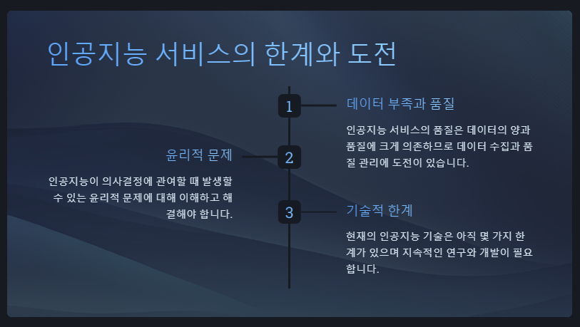 "AI 서비스가 미래에 끼치는 영향에 대하여 전문가 수준으로 만들어 주세요"라고 입력을 하였다.